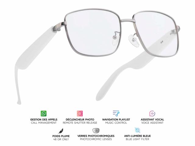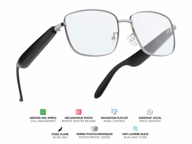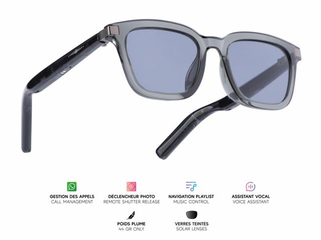 Lunettes connectées Mogie. - Modèle Altair - Branches grises avec verres photochromiques