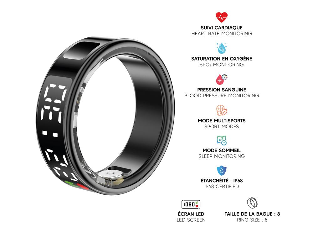 Bague connectée Mogie.avec écrin  - Modèle Saturn - Coloris Noir - Taille 8 Bague connectée Mogie.avec écrin  - Modèle Saturn - Coloris Noir - Taille 8